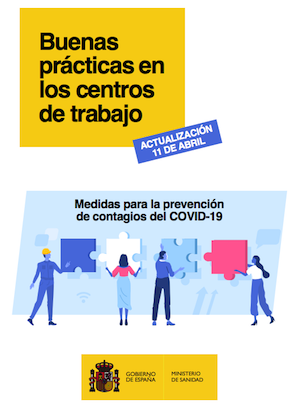 El Gobierno de España ha publicado una guía de buenas prácticas en centros de trabajo para prevenir los contagios del COVID-19 coincidiendo con la reincorporación a sus centros de trabajo, el lunes y martes, de todos aquellos trabajadores y trabajadoras de actividades no esenciales que no puedan teletrabajar.